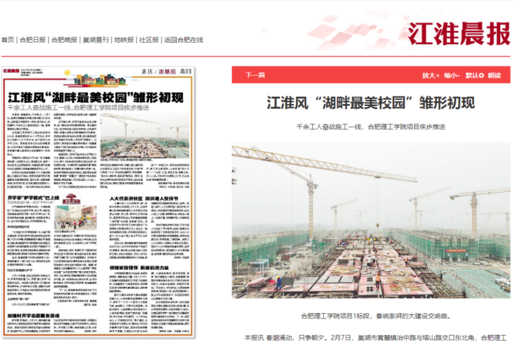 媒體聚焦丨合肥晚報、江淮晨報先后報道公司承建的合肥理工學院1標段項目最新進展