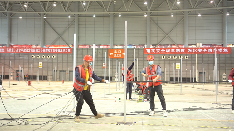 安徽三建黨委書記、董事長何洪春連夜立即召開動員會,要求高速度、高質量、高標準完成方艙醫(yī)院建設任務!公司組織精兵強將,調集60多名管理人員和近700名工人迅速投入現(xiàn)場施工。公司安排副總經(jīng)理樊剛駐點一線指揮協(xié)調。項目部調動一切力量,克服一切困難,發(fā)揮產業(yè)鏈和資源優(yōu)勢,24小時搶工期保進度。