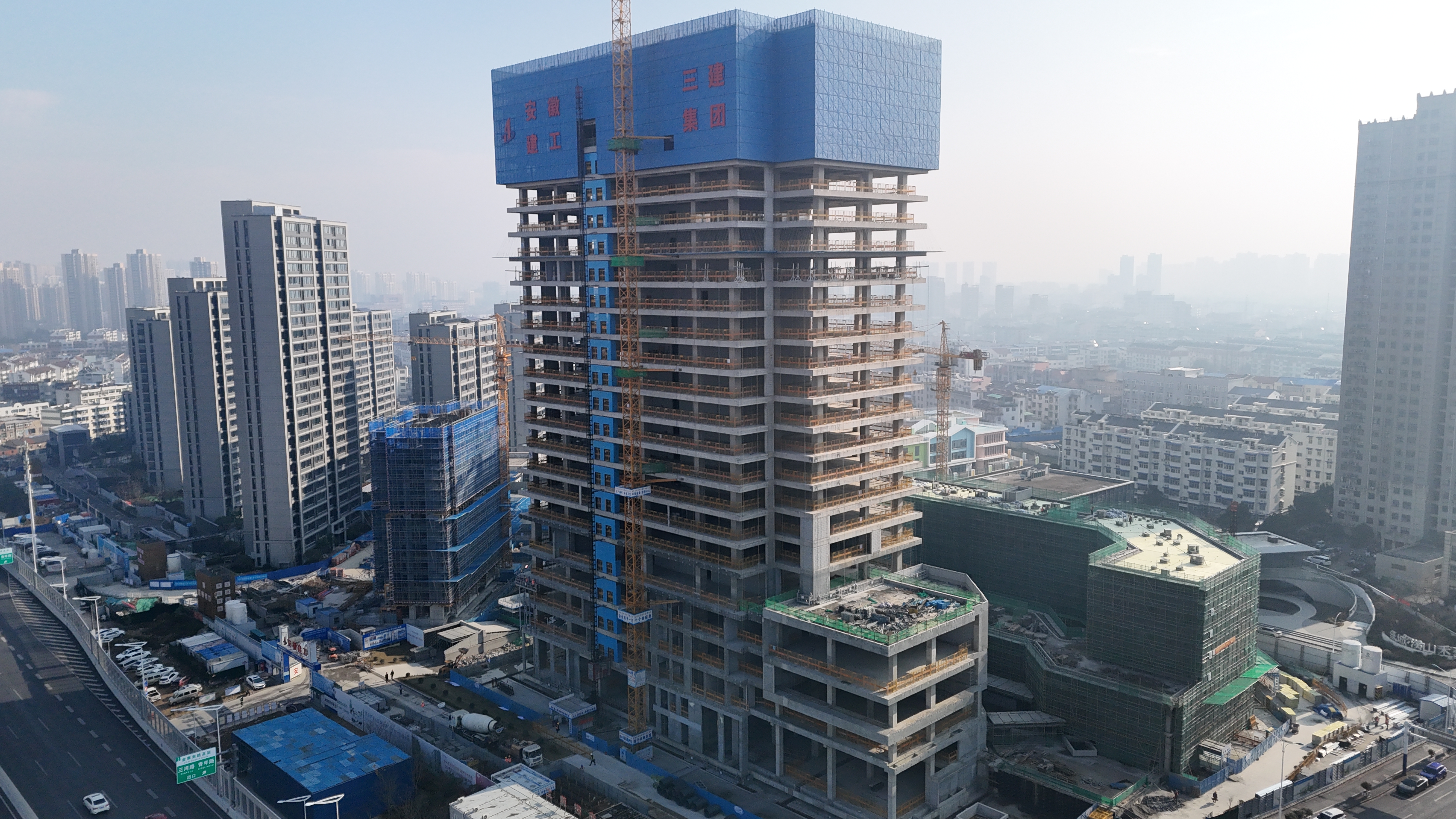 作為區域重點民生建設工程,該項目肩負著完善片區居住配套、提升居民生活品質的重要使命。為確保項目建設穩步推進,建設期間,面對梅雨季節持續降雨、高溫天氣等不利因素影響,以及多樓棟交叉作業、場地規劃協調難度大等挑戰,項目團隊精準施策,嚴格落實集團及公司關于加強項目全過程精細化管控的各項制度要求,并通過搭建臨時防雨設施、實行錯峰施工、采用混凝土防凍技術等針對性舉措,配合細化節點管控、優化人力物資調配等科學管理手段,在嚴格保障工程質量與施工安全的前提下,高效推進項目建設,順利實現所有主樓圓滿封頂的重要節點任務。目前,該項目已全面轉入室內外裝飾裝修攻堅階段,各專業施工隊伍已有序進場,正穩步推進砌體砌筑、管線敷設等各項作業。